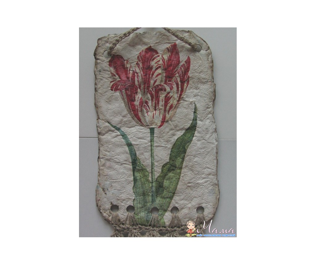 не знаю, что это у меня получилось, как его назвать и правильно ли отнесла я это к скрап работам, но вот как-то так: самодельная бумага, декупаж салфеточкой на ней ну и немножко льняных ниточек и бисера))