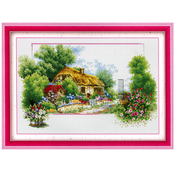 Теперь думаю, скольких китайских жизней займет у меня вся картинка ))) с учетом того, что очень много одиночных. Размер 230 на 140 клеток, канва 11, цветов 49. Домик будет вот такой