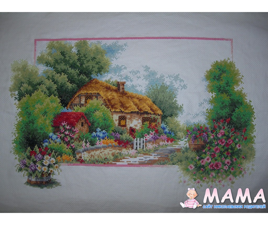 И я свой домик закончила. Еще не оформляла, правда... В итоге вышло 2,5 месяца работы. 47 цветов (плюс бленды), крест, полукрест, бэкстич. Размер вышивки вышел 32х52 в итоге.