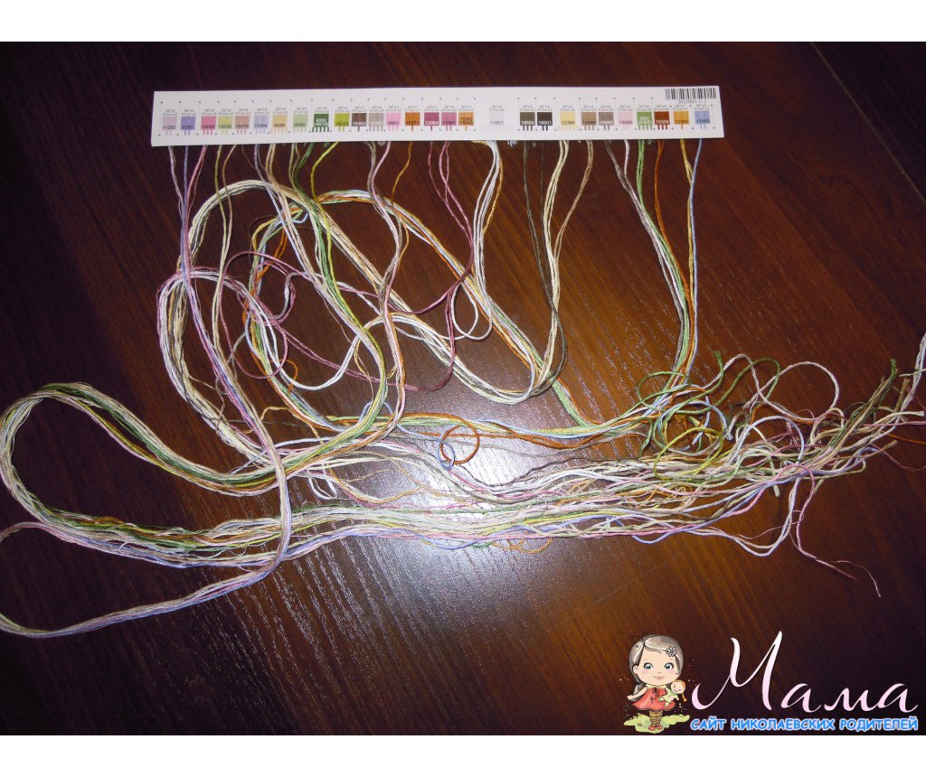 А нитки в мене якась аріадна :) І канву я не вибирала - вона все одно була там одна витяжна. Що було в ідеї, те і купила.