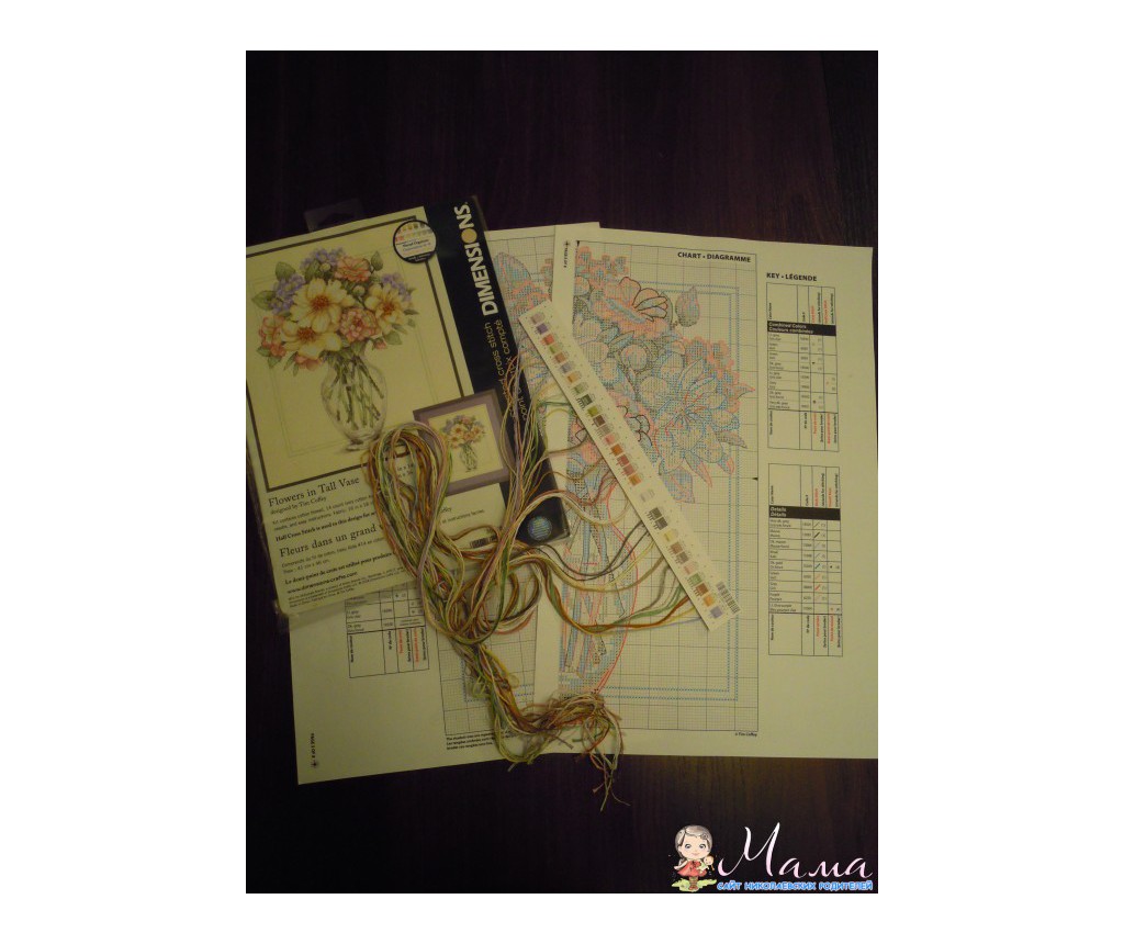 Девочки, вот и пришел мне набор от Dimensions Цветы Парижа Китай китайский (не путать с просто китайской комплектацией :). Срок ожидания - 5,5 недель. Дешевле оригинального набора с учетом скидок на последний - в два раза. Но оговорю сразу, китайский набор я выбирала самый недорогой (там были и подороже и , возможно, более приближенные к оригиналу).