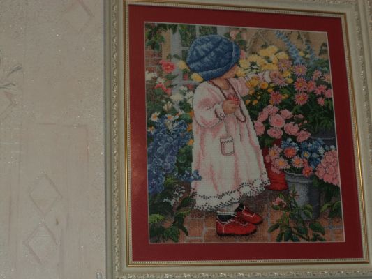 надо же :) и я вышила пару лет назад такую же девочку в цветах ))) дочке своей в комнату подарила