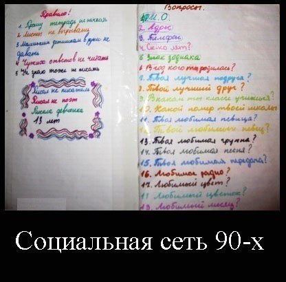 У самой была такая социальная сеть в пользовании,плюс песенник с наивными песенками и наклейки от жвачек собирали тоже,не говоря уже про календарики и марки..Недавно откопала свой дневник,который начала вести в 1987 году