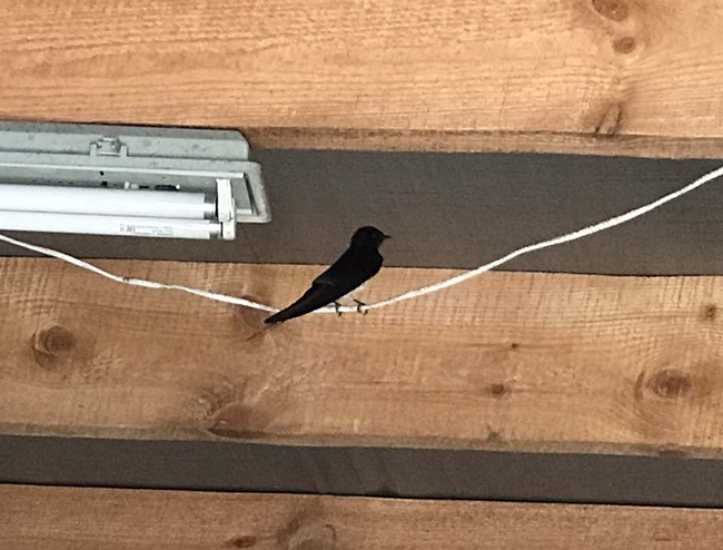 я подозреваю, что это вовсе не ласточка, а стриж, у них сегодня такие полеты были перед дождем, так что не удивительно, что залетел, ничего страшного, абсолютно, это даже не к вестям, а просто случайность