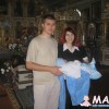 Мы крестили Димочку в 2 месяца,1 сентября 2007,он не плакал а смотрел своим не понимающим взглядом вокруг))Счастливые родители и крещенный малыш