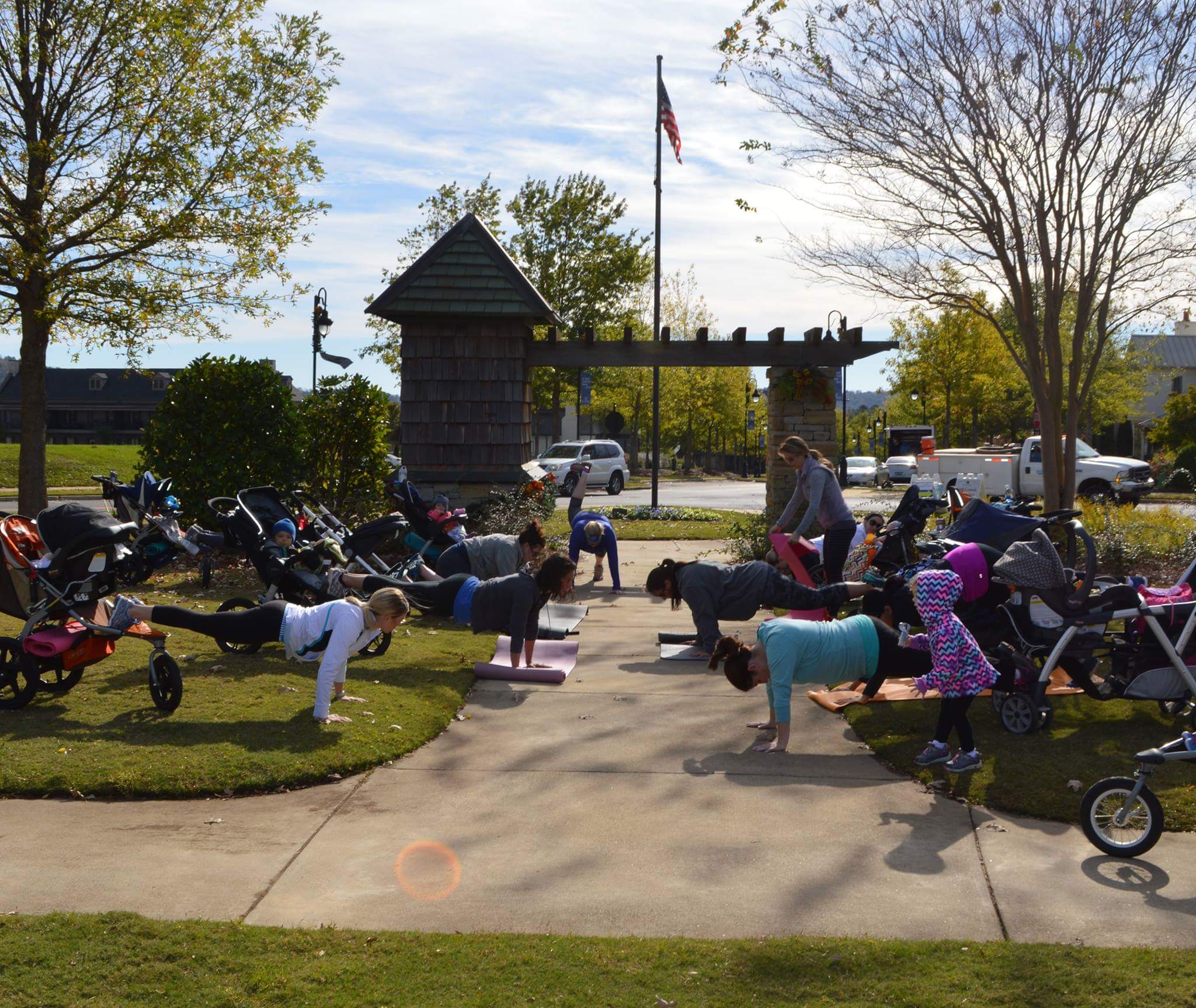 Программа для мам с малышами до 1 года как раз учитывает все варианты режима ребенка. Малыш находится в коляске и может как бодрствовать, так и спокойно спать, мама рядом и при необходимости всегда может сделать перерыв на кормление, смену подгузника или укачивание. Если ребенок не спит, он может принимать участие в некоторых упражнениях с мамой и выступать в роли дополнительной нагрузки (или утяжелителя). Часть упражнений проводится в динамике, при этом мама катит перед собой коляску, что имитирует обычную прогулку. Конечно, это все при условии благоприятной погоды. В случае дождя или сильного ветра, а также в холодное время, занятия естественно будут проводиться в помещении.