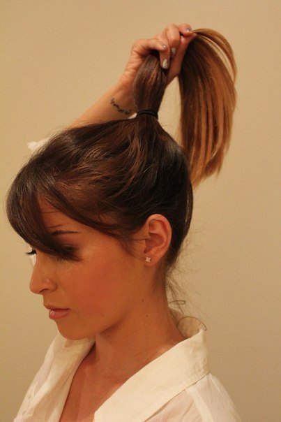 1. Соберите волосы в высокий хвост