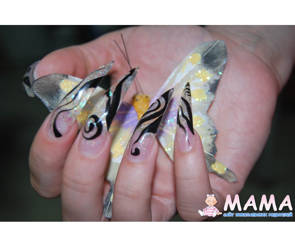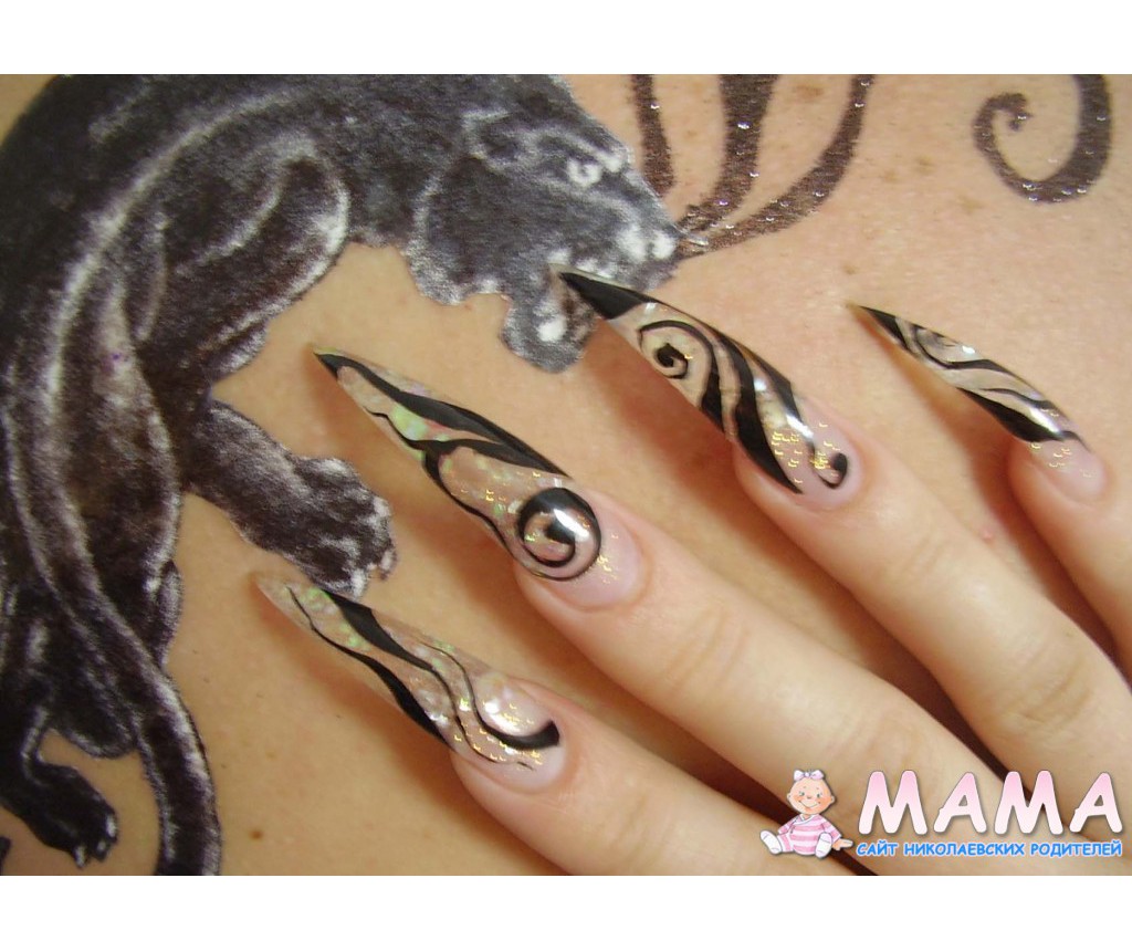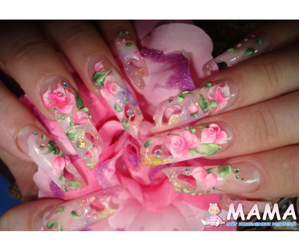 Делает гелевое наращивание, роспись, френч, ногти выглядят исключительно натурально. От коррекции до коррекции без проблем ходила полный месяц. Сейчас я просто сняла своё наращивание перед родами, боюсь некогда будет на коррекции ходить.