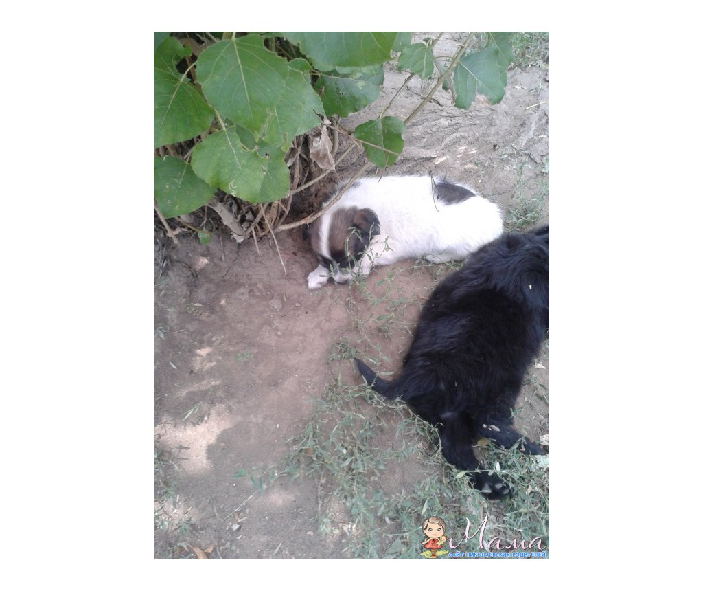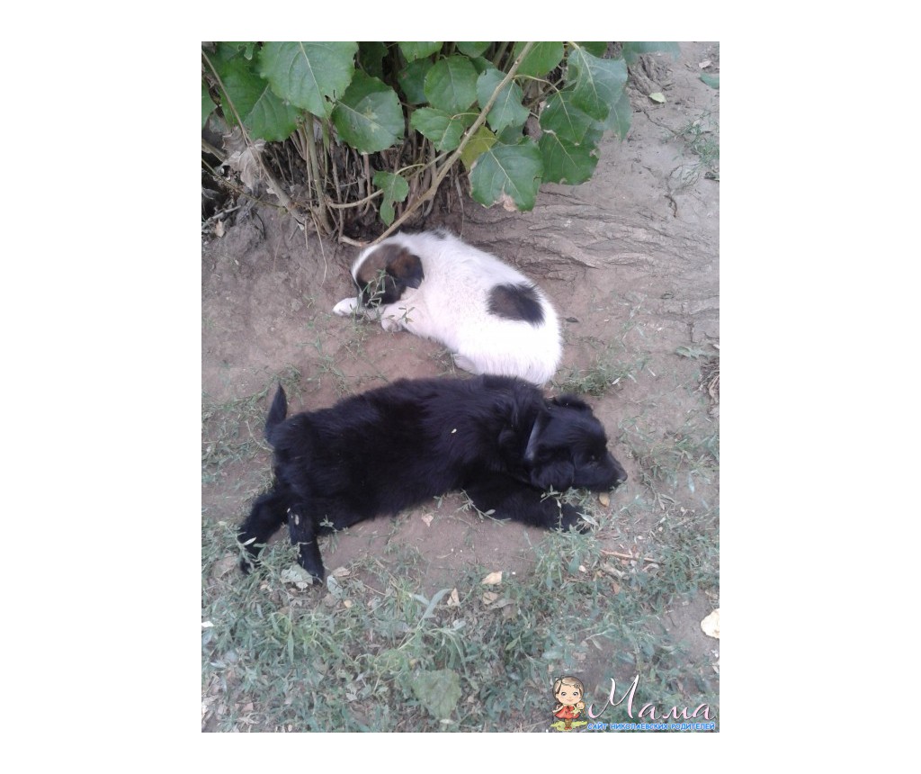 Такие вот лапули от небольшой собачки, живут в будочке, весь двор за ними ухаживает, кормит! На черного даж противоблошиный ошейник одели. Их было четверо. Черненьких два - один лохматый (на фото, второй короткошерстный). Когда я их фоткала четвертого не нашла, возможно дрыхнет в будке. Вечером посмотрю. Их мама хороший охранник, живет во дворе давно. Понапрасну не брешит.