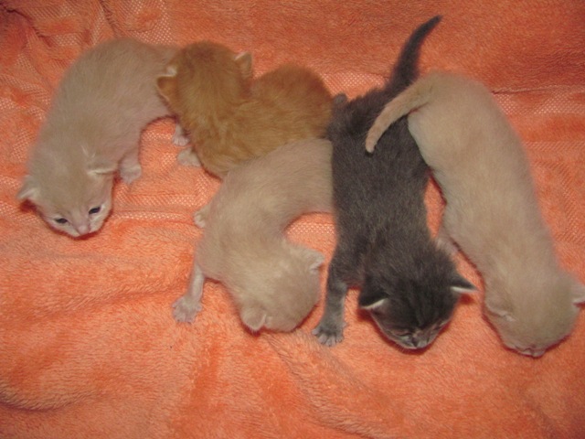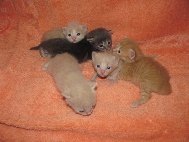 20 августа кошка родила котят, вроде как все мальчики. Они еще маленькие и не кушают самостоятельно, но хочу пораньше найти всем хороших хозяев. Поэтому забрать можно будет в первых числах октября, когда они и кушать самостоятельно будут, и на лоток ходить. Так что обращайтесь!