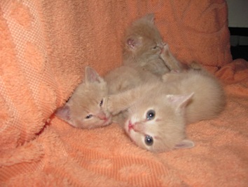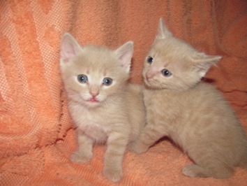Осталось 2 бежевых котенка с голубыми глазками, вроде как мальчики. День рождения 20 августа. Кушают самостоятельно, не привередливы в еде, ходят на лоток.