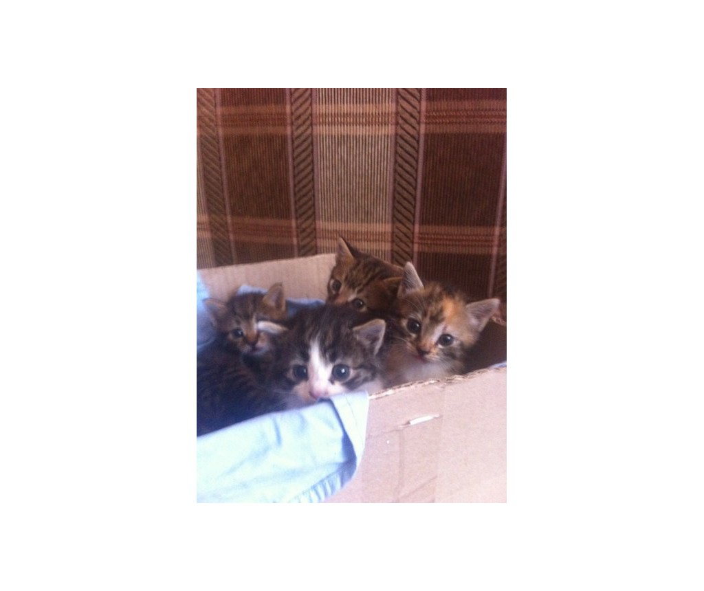 Всем, добрый день!)нашли на улице коробку с котятами и не смогли пройти мимо.. Видно, что они домашние, чистенькие. Кто-то просто выставил их на улицу.. Три очаровательные девочки и один супер - мальчик. Они ещё совсем манюни, но уже сами потихоньку пьют молочко, даже сами ходят в горшочек. Очень общительные, просят общения, им нравится, когда их гладят. Сразу вознаграждают мурчанием)) Мы их покупали. Помогите, пожалуйста, пристроить. У себя нет возможности оставить, т.к. дома уже есть два кота. Может кому-то приглянется какой-то из пушистиков. Даю в наследство каждому из котят свой горшочек, мисочку и молочко)) Звоните: 093 817 04 98