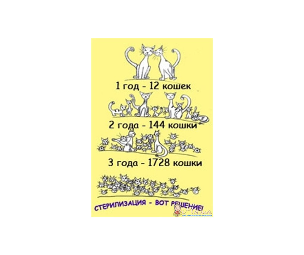 Цитата: #11115 Счастье 10 June 2013, 15:13Я считаю, что каждый должен отвечать за свои поступки. Я не хочу чтобы в моем дворе жило 574 кошки, я не хочу чтобы в моем дворе жила стая собак. Я своих животных не размножаю, так почему я и моя семья должны страдать из - за тех, кто бесконтрольно поощряет размножение уличных животных? Я выше привела картинку, там идеально описана схема размножения кошек и собак.