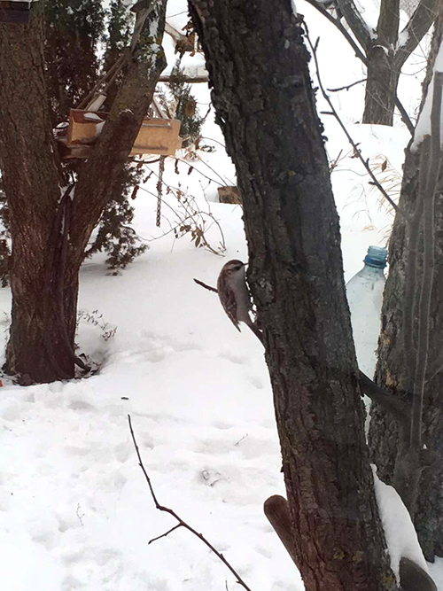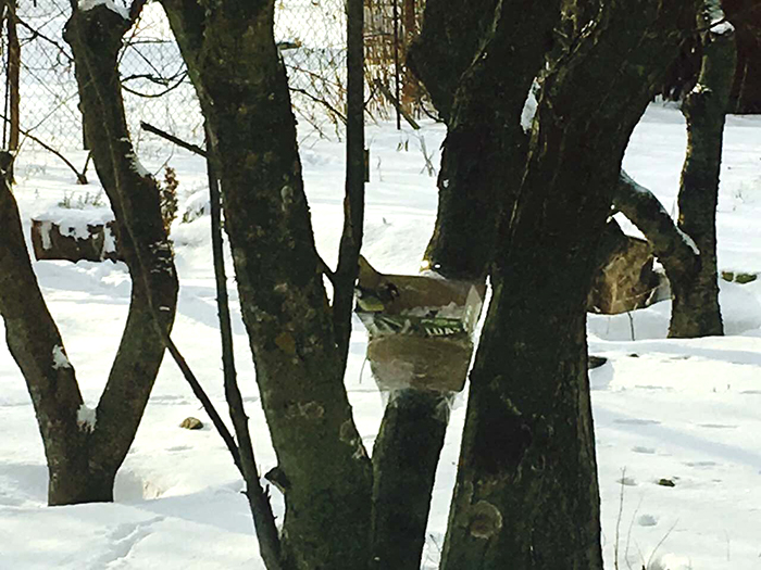 Я смотрю, в этом году им не так уж покормка требуется, корм остается, давно лежит уже. Одну зиму деревья обледенели коркой - вот тогда каждый день полные кормушки уходили до последнего семечка.