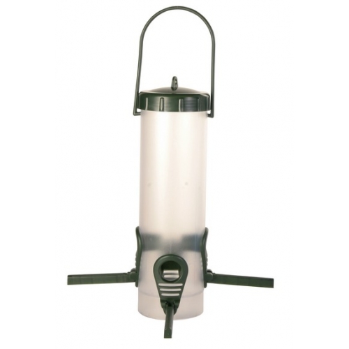 Легко наполняется кормом с помощью съёмной крышки. Сохраняет корм чистым и сухим. По периметру кормушки закреплены 4 жердочки.
