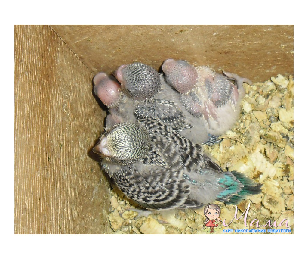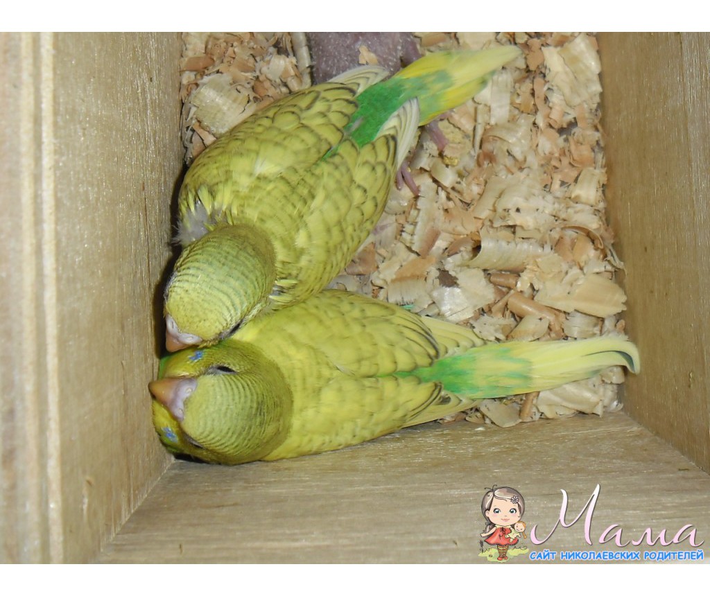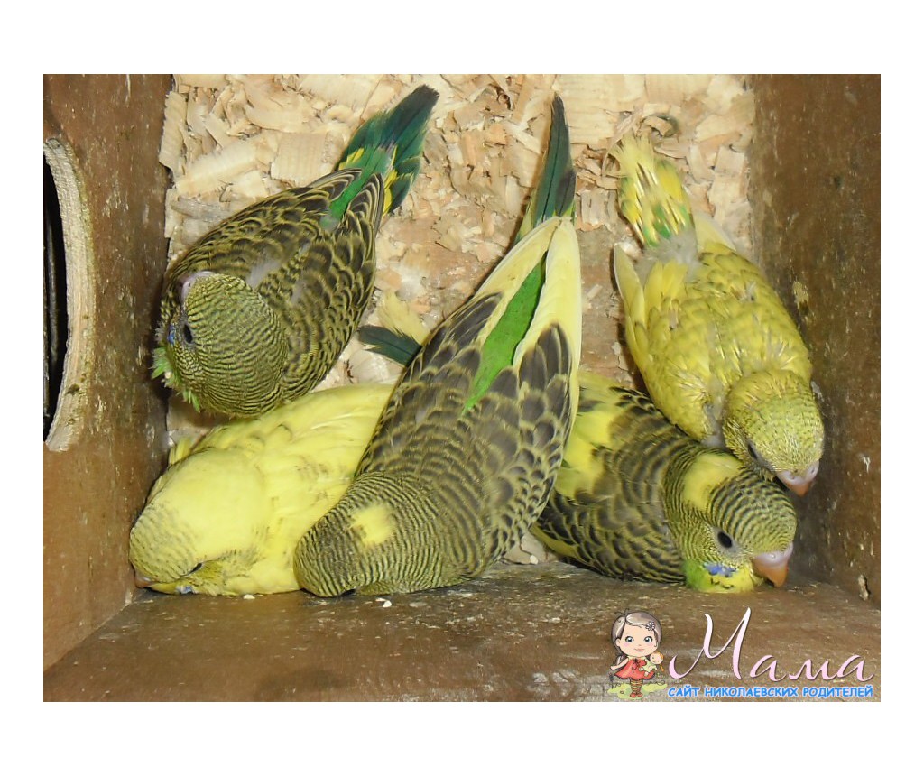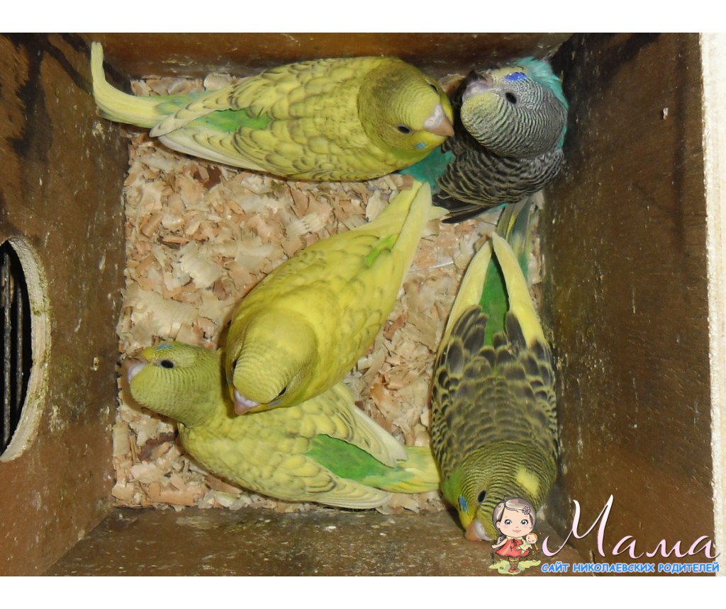 Привет Ольчик! Кешина копия - девочка. На фото 4 и 5, все девочки-близняшки от папы Кеши и мамы Лимончика. Кеша оказался на зависть очень заботливым папашкой. Еще очень красивые получились фиолетовые желтолицые птенцы от другой пары. Здесь они маленькие, как воробушки, а сейчас - красавцы. Позже сфотографирую.)))))!