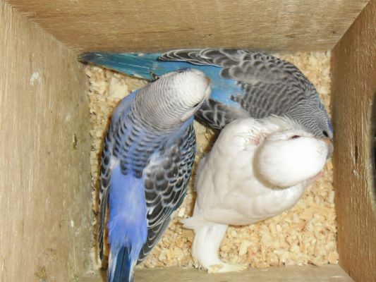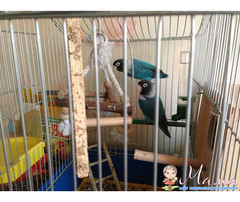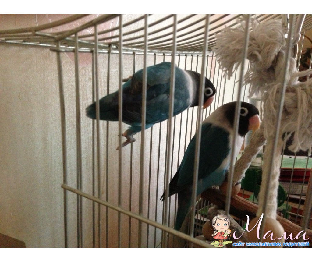 А это мои любимые попугаи, мечтала о них с 16 лет - Масковые синие неразлучники Мальвина и Пьеро, правда муж называет Чих и Пых :-)