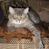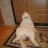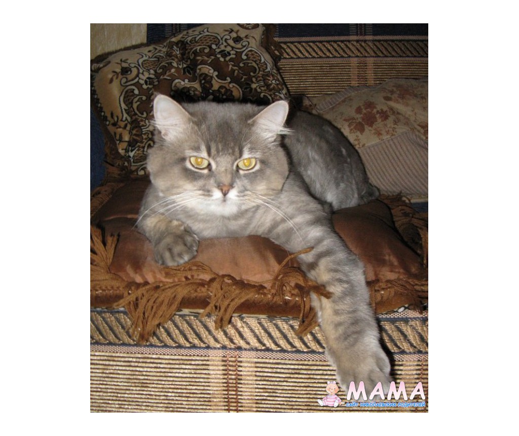 , болтливый до невозможности - в его "мяу", "мряк" и "мыррр" столько разных интонаций для передачи настроения и эффективного попрошайничества, что просто диву даюсь...Способен объяснить, чего он хочет, 2-3 звуками.А хочет он обычно кефира, конс. кукурузу (за юшку от нее мать родную продаст) и сухие завтраки "Космостар". А самая любимая еда - бычки в томате.