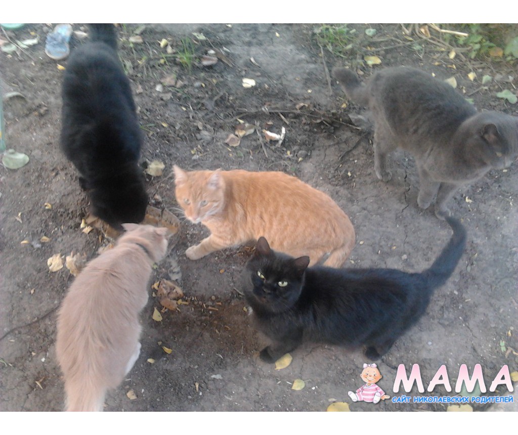 Рыжие мои, остальные соседские, но живут впятером на 2 дома. как рыбу или птицу чищу на улице - так садятся вокруг и мурлычут на разные голоса -весело.