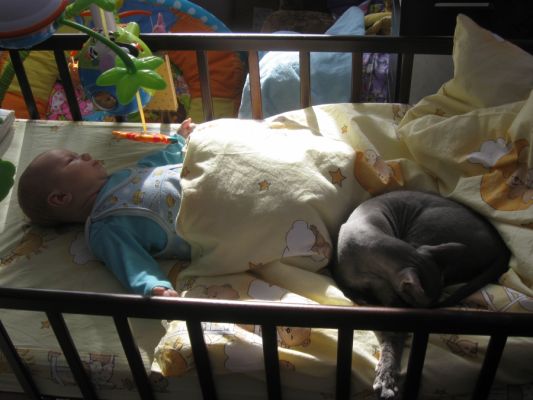 ))) Видимо, достигли дзен) Чего не скажешь о сереньком в присутствии дитенка)