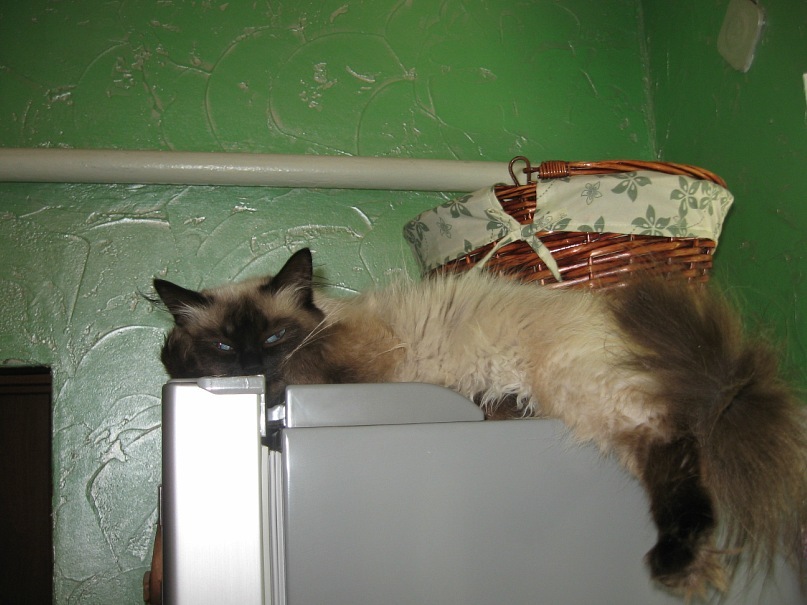у нас уже год живет вот такой котейка, главный конкурент мужа по части лени, поспать и вкусно покушать))))