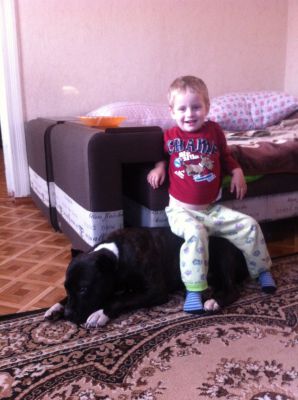 А это наш Макс или просто Мася, правда он уже побольше стал) тут ему пол года всего, на цепи не сидит вообще, как и не знает что такое поводок! Привязываем только когда кто-то приходит в гости и боится его