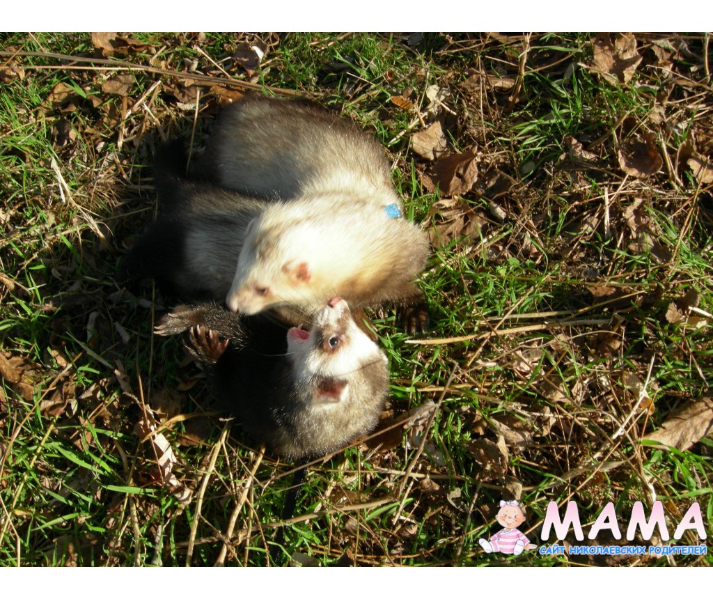 Выходим частенько на улицу в парк или на берег. Хорьке нравится копать и рыть, копать и рыть,.. под деревом, норы на берегу, заходить в речку и доставать камушки со дна… Редко интересуется другими животными, хотя последние просто в диком восторге от такого чудного зверька. А Хоре по душе другие хори, кого можно покусать, поганяться![]()
