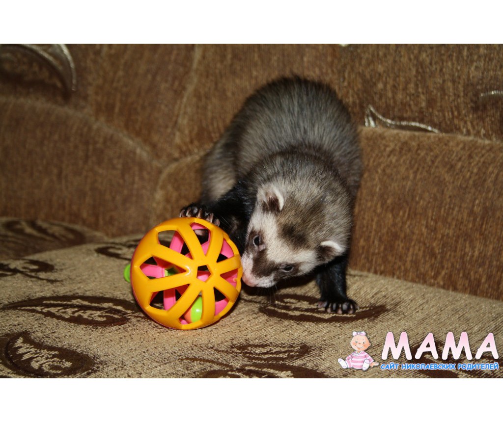 Но при этом мы его очень любим. Он ласковый и игривый. Если ему скучно, он может с вами заигрывать или залезть на руки и лизать, лизать… Кстати, наш Хорька не кусается, он только может зализать до смерти!