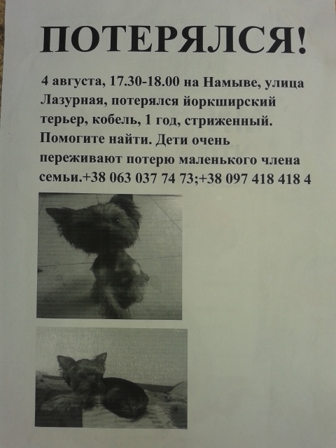 добавлю фото сюда, в одноклассниках в комментариях пишут,что собаку вчера таки видели на Намыве, то в районе маг.Одесса, то в районе 40 дома..