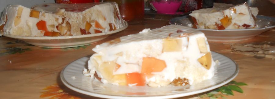 и мы просто обожаем этот тортик! самый простой, как для меня. легкий и вкусный. я использую магазинное желе, чтобы меньше морочится и сметану покупаем меньшей жирности, где то 15%. он тогда совсем легкий получается. иногда делаю с фруктами, а иногда без. печенье вообще не добавляю. у нас как то с печеньем тортик не прижился... утяжеляет его что ли...