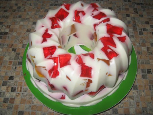 все-таки идеальный рецепт битого стекла- без фруктов,только желе,три цвета желательно-веселее получится,и разводить одну пачку нужно 400 мл воды,просто в разведенное желе добавить немного желатина и размешать чтоб комочков не было, и только потом в холодильник) резаться будет отлично, а вместо коржа- хрустики с маком,перемазанные сметаной) бомба получится))) да и без сливок можно обойтись,просто сметаной , и эелномнее, и вкус нежней)