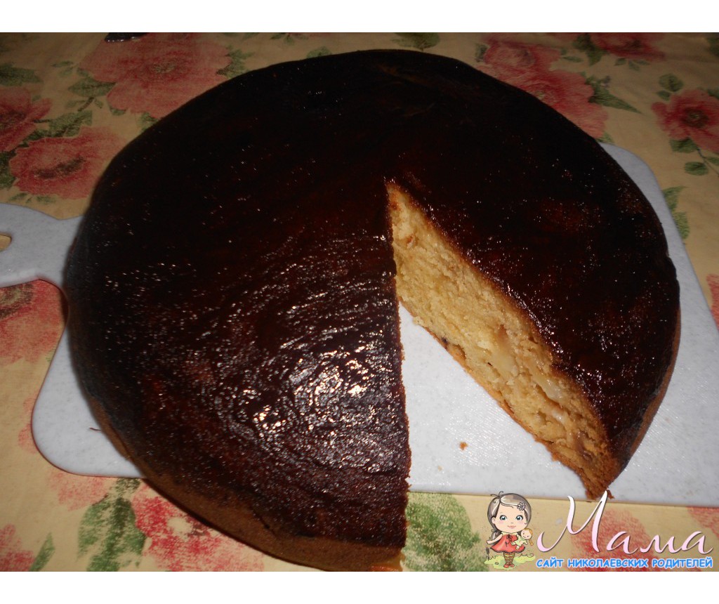 Я сверху посыпала орешками. Получилось очень вкусно, больше похоже на суфле чем на пирог. Хорош как в холодном виде так и горячем.