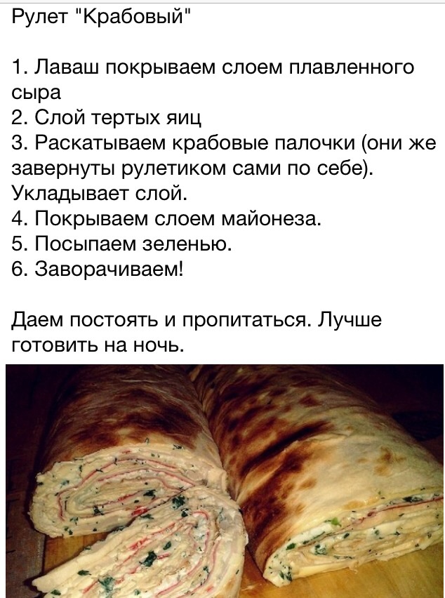Развернуть лаваш (тонкий), положить на него начинку и свернуть рулетиками или конвертиками. Дать пропитаться 30 минут.