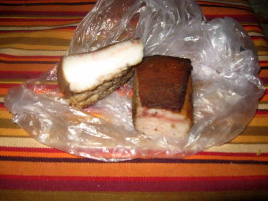 сало домашнего копчения- это "приготовила" миникоптилка, помещается на табуретке на балконе. очень удобная.