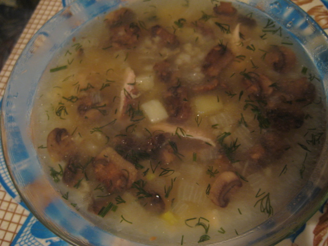 Зелёный борщик, пшеничная каша, печёночьные котлеты и конечно же домашний хлебушек)