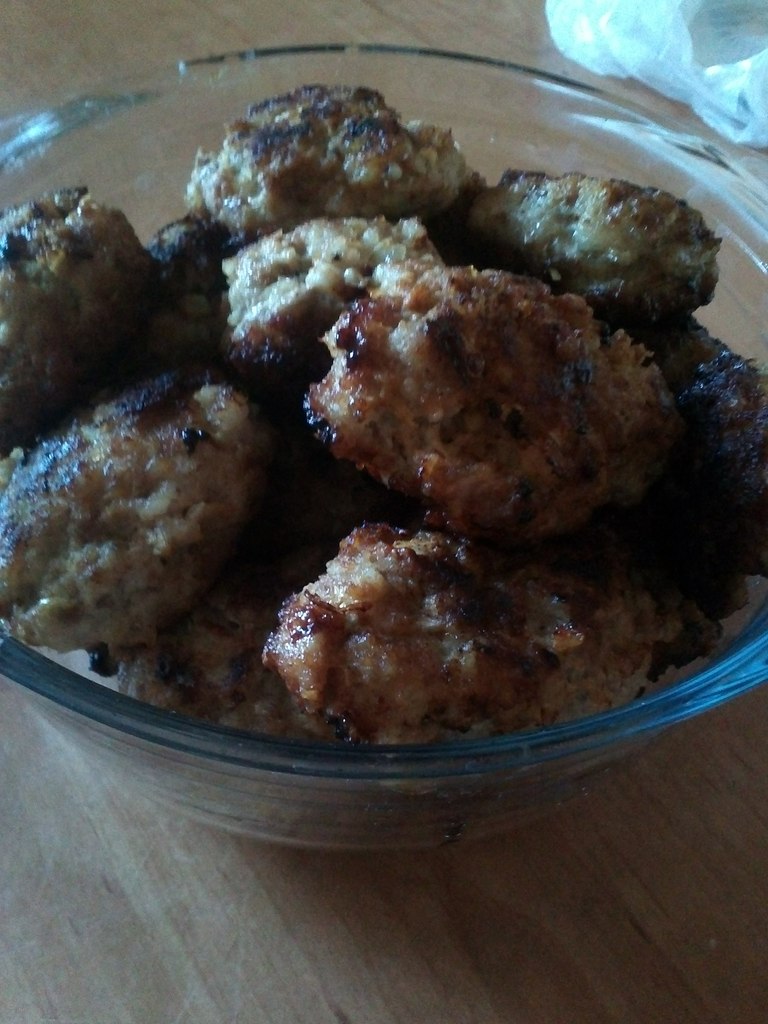 Куриные бедрышки в соево-медовом соусе, картофельное пюре, отбивные; грибочки с луком в сливках (обжарила это все мелко нарезанное, чтоб потом на гренки намазывать).