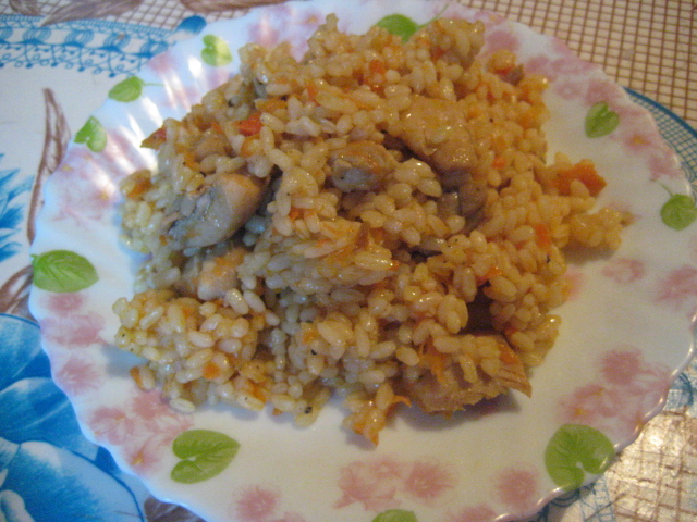 У нас картошка с мясом (типа жаркое) и домашние чебуречки.Сделала по новому рецепту, там тесто заварное и в тесто добавляется водка.Очень вкуснячие получились!