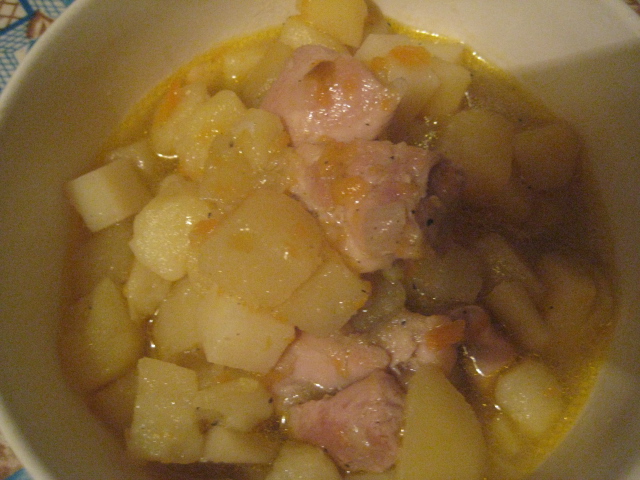Красный борщ с фасолью и свиными ребрами, молодая картошка, куриные бедра запеченые в духовке,салат:молодая капуста,сыр филадельфия,консерва тунец,зелень,майонез.