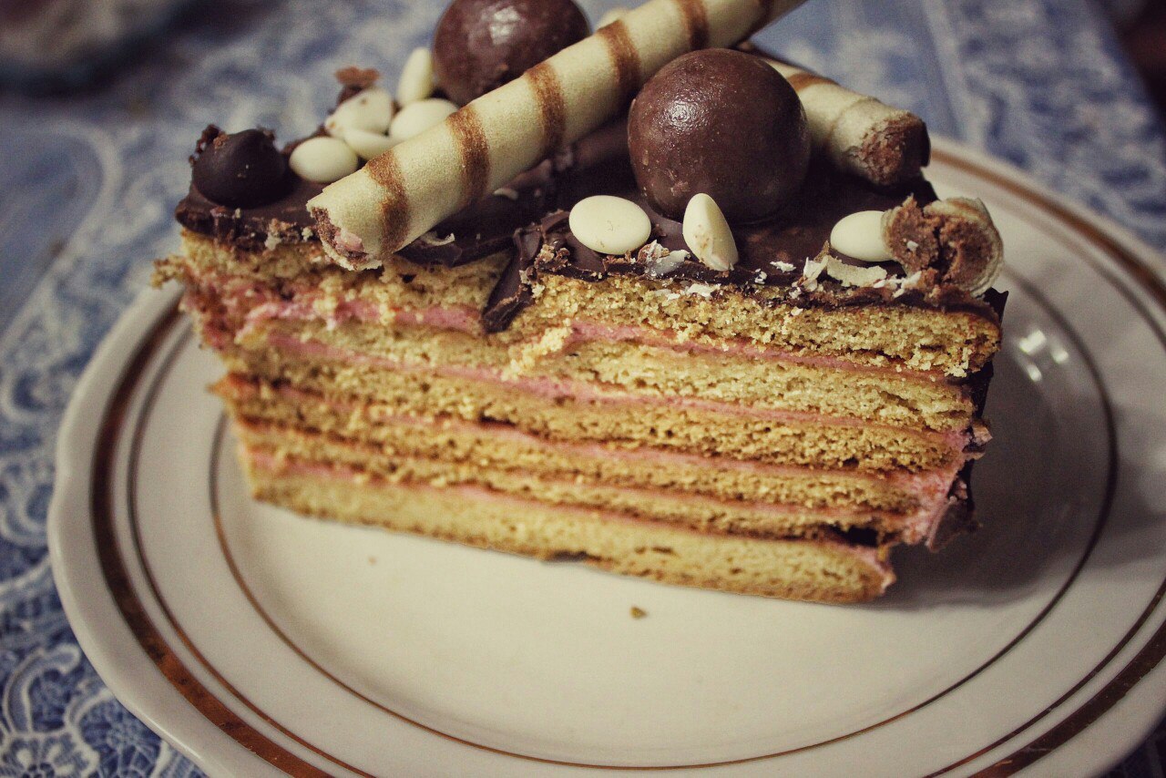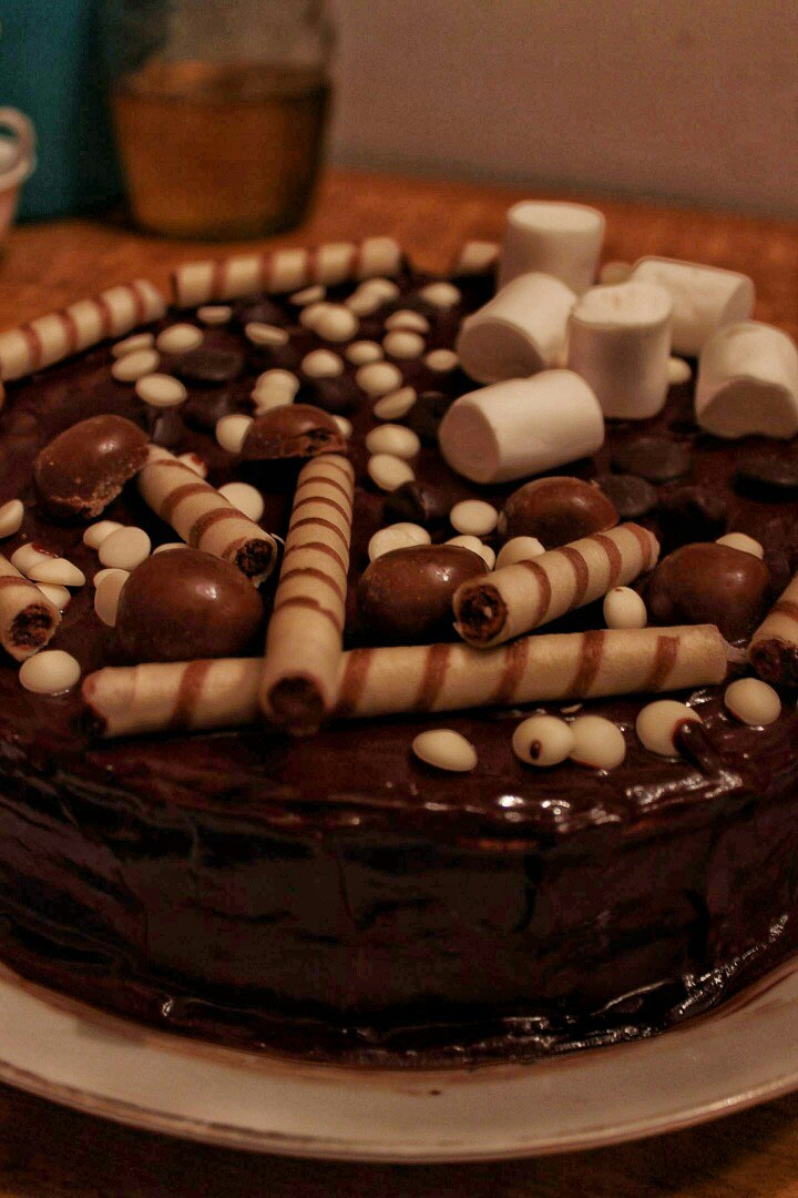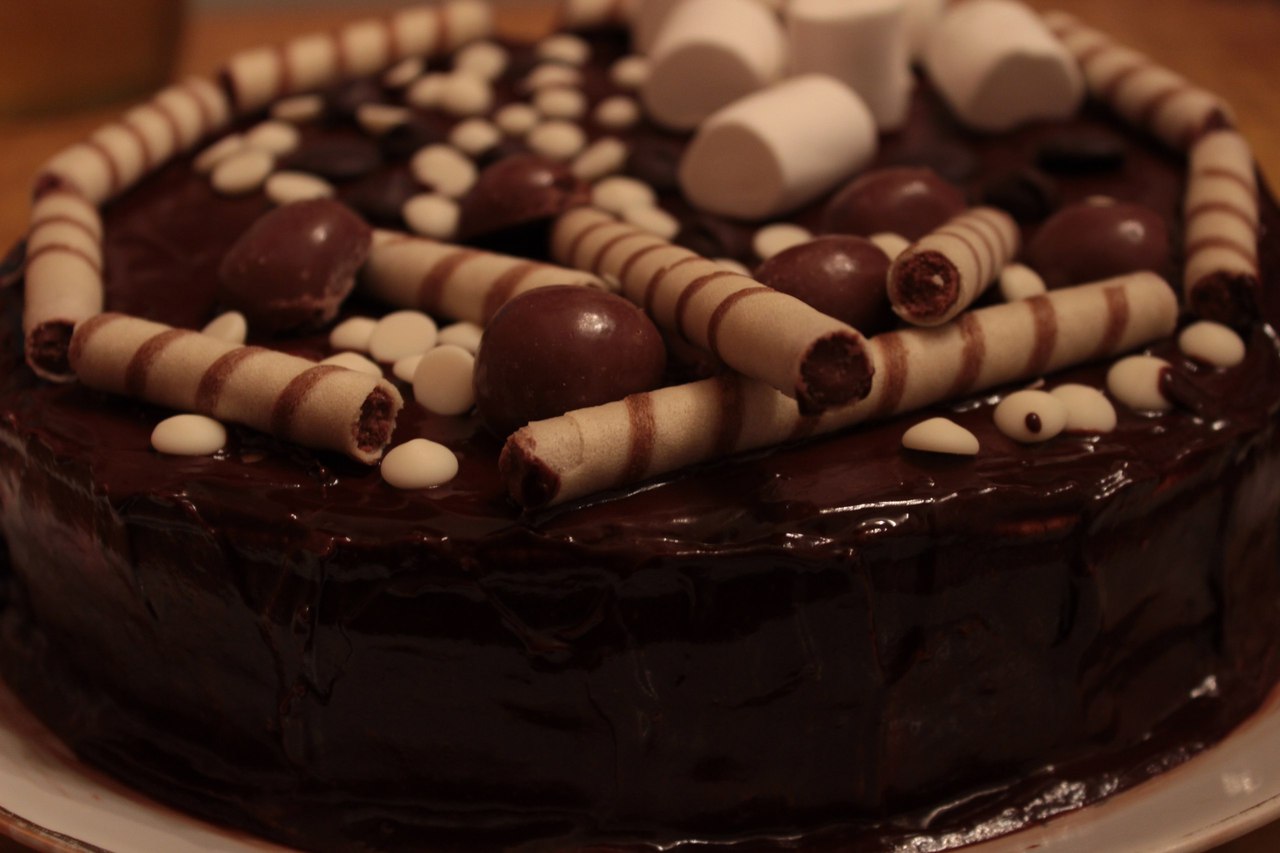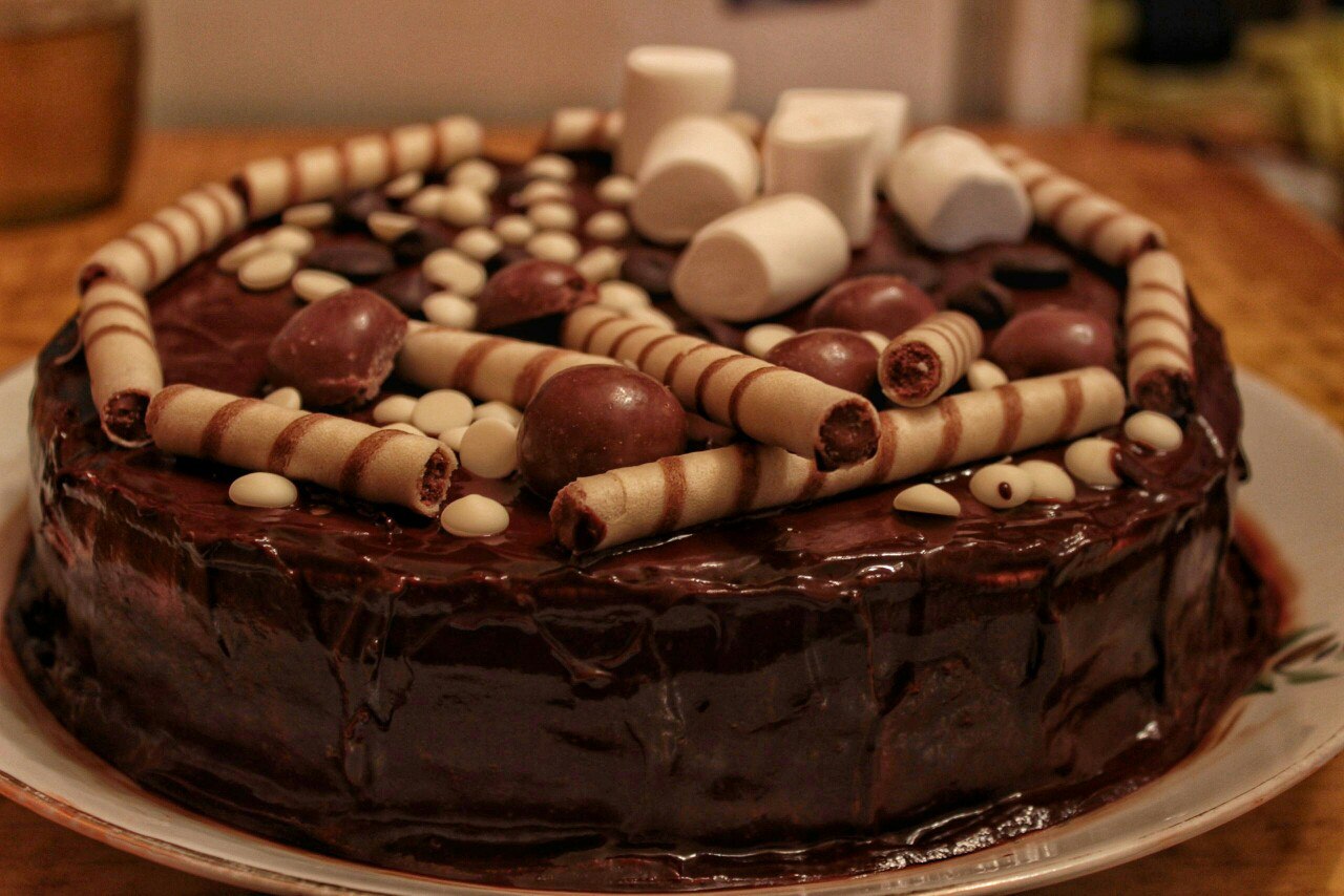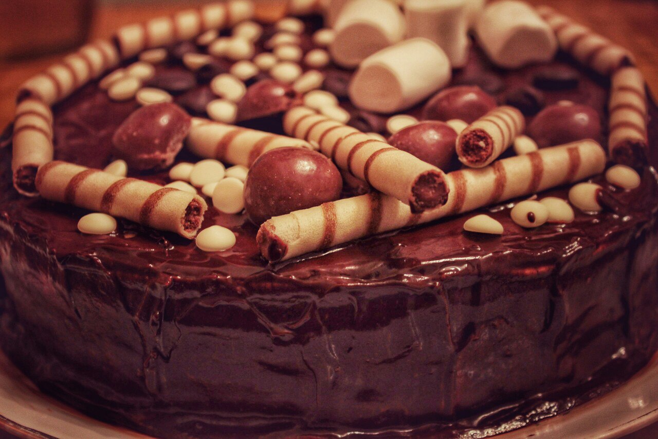 А я вчера торт приготовила, впервые в жизни) Не люблю печь, и не пекла сладости. А решила для своего тренера сделать подарок) И по новомодным рецептам инстаграмма, украсила его всем подряд! Вкуснющий был)