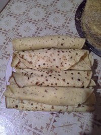 Пюре с сосиськами,салат с помидорами, блинчики с грибами и сыром, торт Напалион.Сынок не выдержал тортик пробывал на вкус