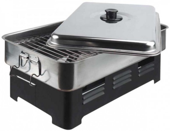 Мини-коптилка. Меня привлекла своими размерами. Она совсем небольшая, из нержавейки,моется очень легко. Помещается на балконе на табуретке или можно ставить на плиту.