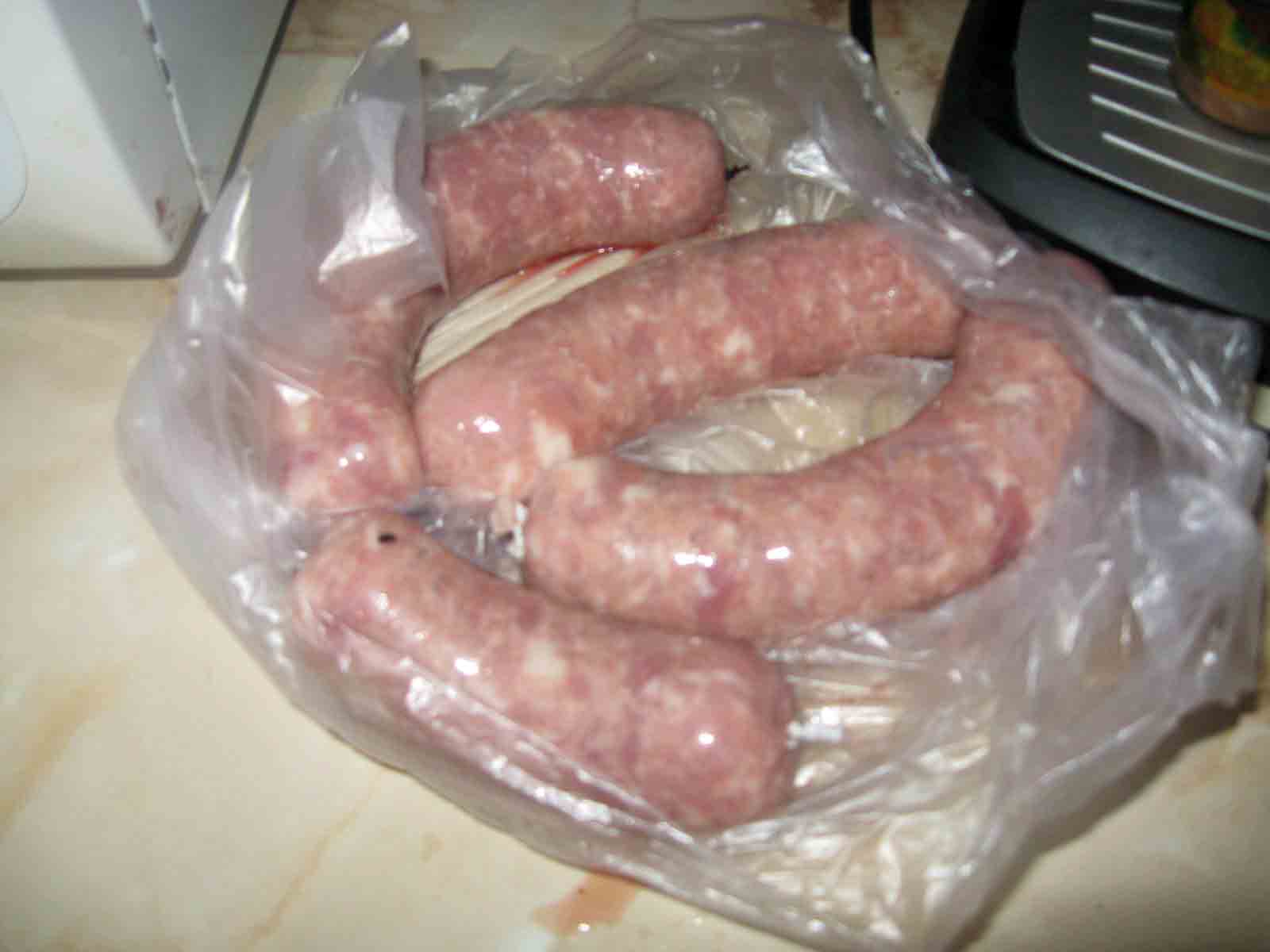 На другом фото-колбаски сырые. может это они кажутся грязными? но это- сырые, те, что я складываю в кулек и -в морозилку. в нужное время- они используются.