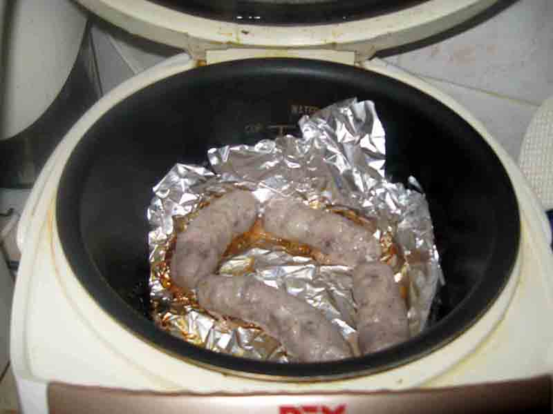 у меня самый разгар процесса рабочего сфотографирован. мультиварка- в которой колбаски готовятся,вся забрызгана, есс-но. я приоткрыла крышку когда они как раз шипели и шкварчали.