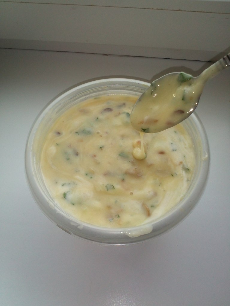Творога взяла неизвестное количество - небольшой пакетик домашнего был у меня, думаю что там было грамм 200-300, а может и нет. Взяла 1 яйцо, пол ч.л. соли и пол ч.л. соды и 1 ст. л. сметаны домашней. Все перемешала комбайном и поставила на водяную баню. 15 минут прошло, масса была однородная, но очень жидкая, почти как водичка, поэтому поставила просто на огонь и плавила еще 5-10 минут. Ну и масса практически не загустела, все равно лилась с ложки сильно, начало уже попахивать горелым, поэтому сняла с огня и добавила тертую полукопченую колбасу. В лотке масса застыла, а я было расстроилась что не получилось. Но я думала что сыр по консистенции получится как бы тягучий, а он у меня как паста получился. Так и должно быть?