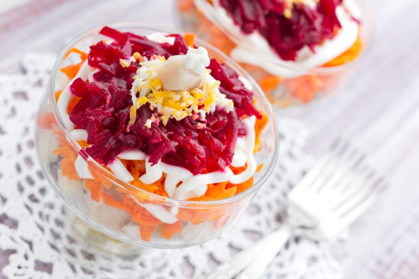 Заправка- 2-3 ложки рослинної олії, гірчіця в зернах, винний оцет, лимоний сік, сіль, італійські трави. Якщо хочеться більш відчутного соусу, то можна додати пару ложок майонезу.