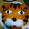 На дно плоского блюда выложить картофель, немного посолить, поперчить, придать форму головы тигра.
