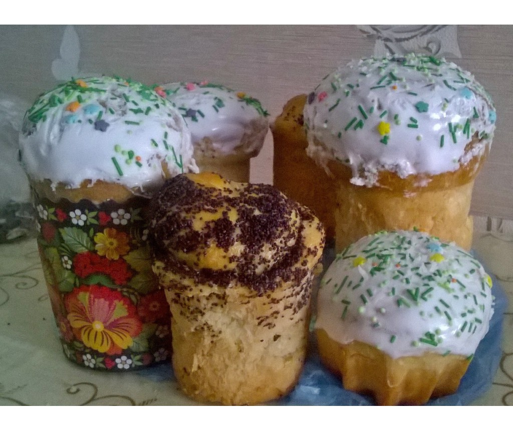 Вышло 4 кулича, один громадный рулет и один калачик( рулет и калач начиняла маком с орехами и медом, все через мясорубку).jpg)
