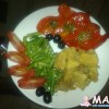 На гарнир у меня жареная спаржа, маринованый болгарский перец и свежие помидорки. Для красоты на тарелку добавила маслин.