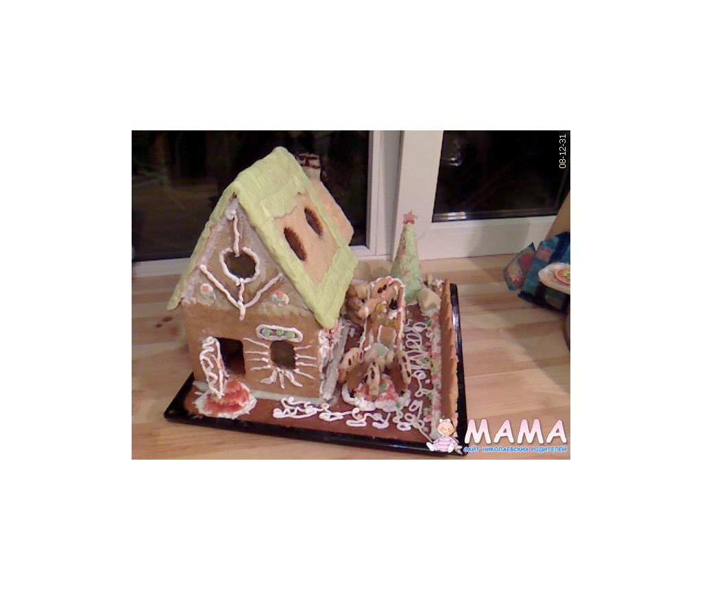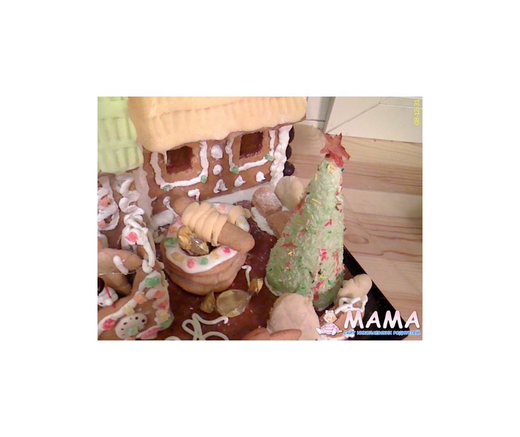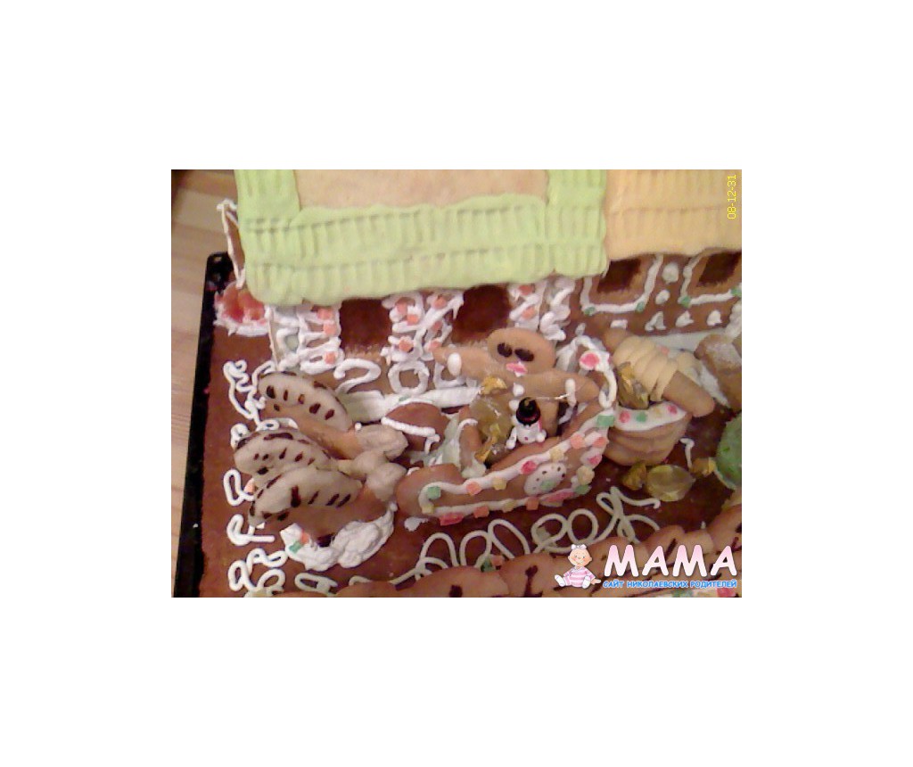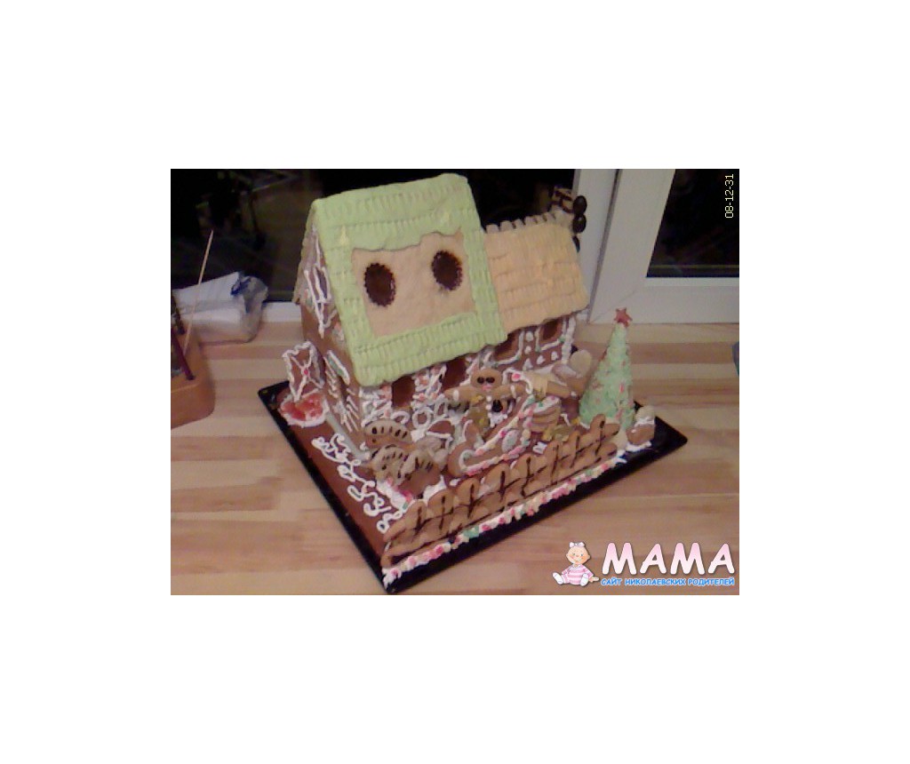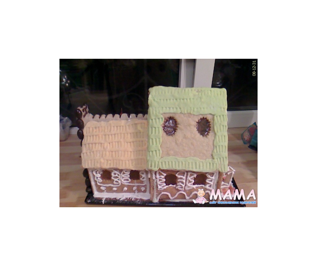 Окошки "слюдяные" - из леденцов. В новогоднюю ночь выключили свет, зажгли внутри свечку - просто сказка получилась, малыш ходил кругами, а отчим фотографировал со всех ракурсов, угрожали, что есть не будут Если найду фотки со свечкой, тоже добавлю.