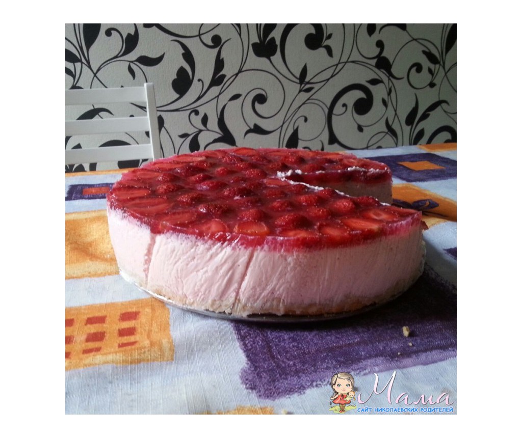 а я вчера утилизировала клубнику, вот что вышло)))торт творожно-йогуртовый, без выпечки))